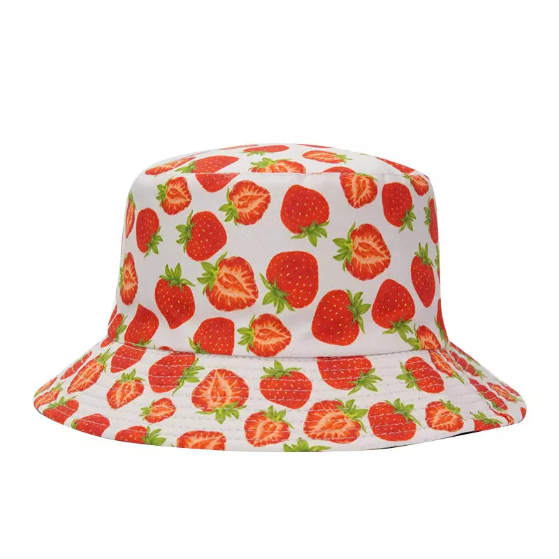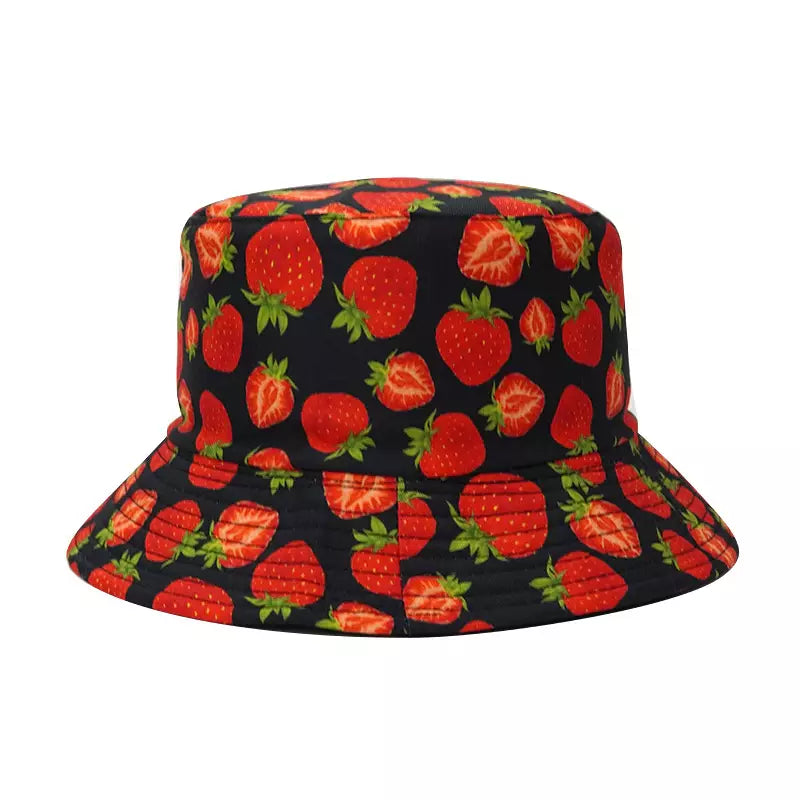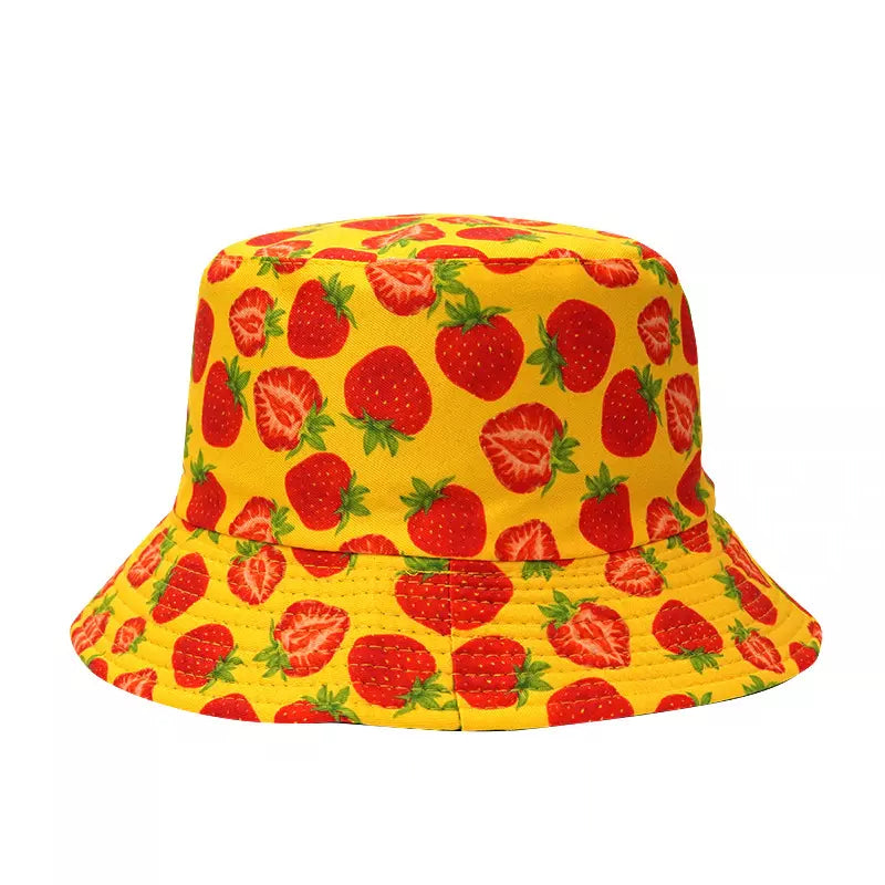 The Strawberries Reversible Bucket Hat is the perfect complement for your summer look, Enjoy sunny days with this charming hat. You can choose between the strawberries print or the plain black side. Made of 100% high quality cotton. Available in yellow, white, black & blue
