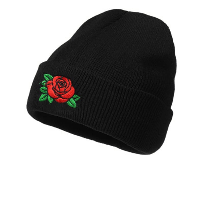 Red Rose Black Cotton Beanie